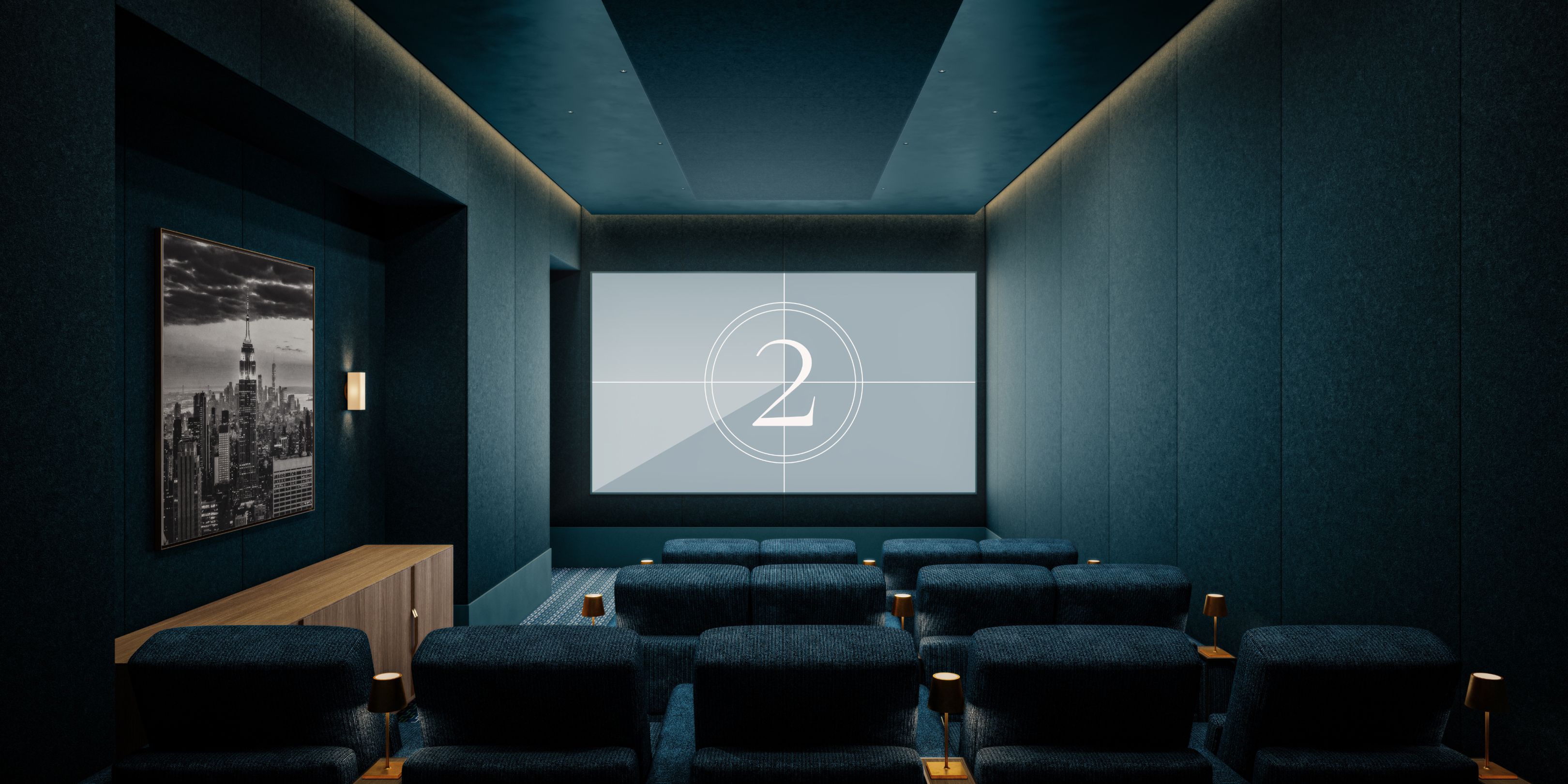 The cinema with plush seating and dinner-club-inspired lighting, can be reserved for private screenings.